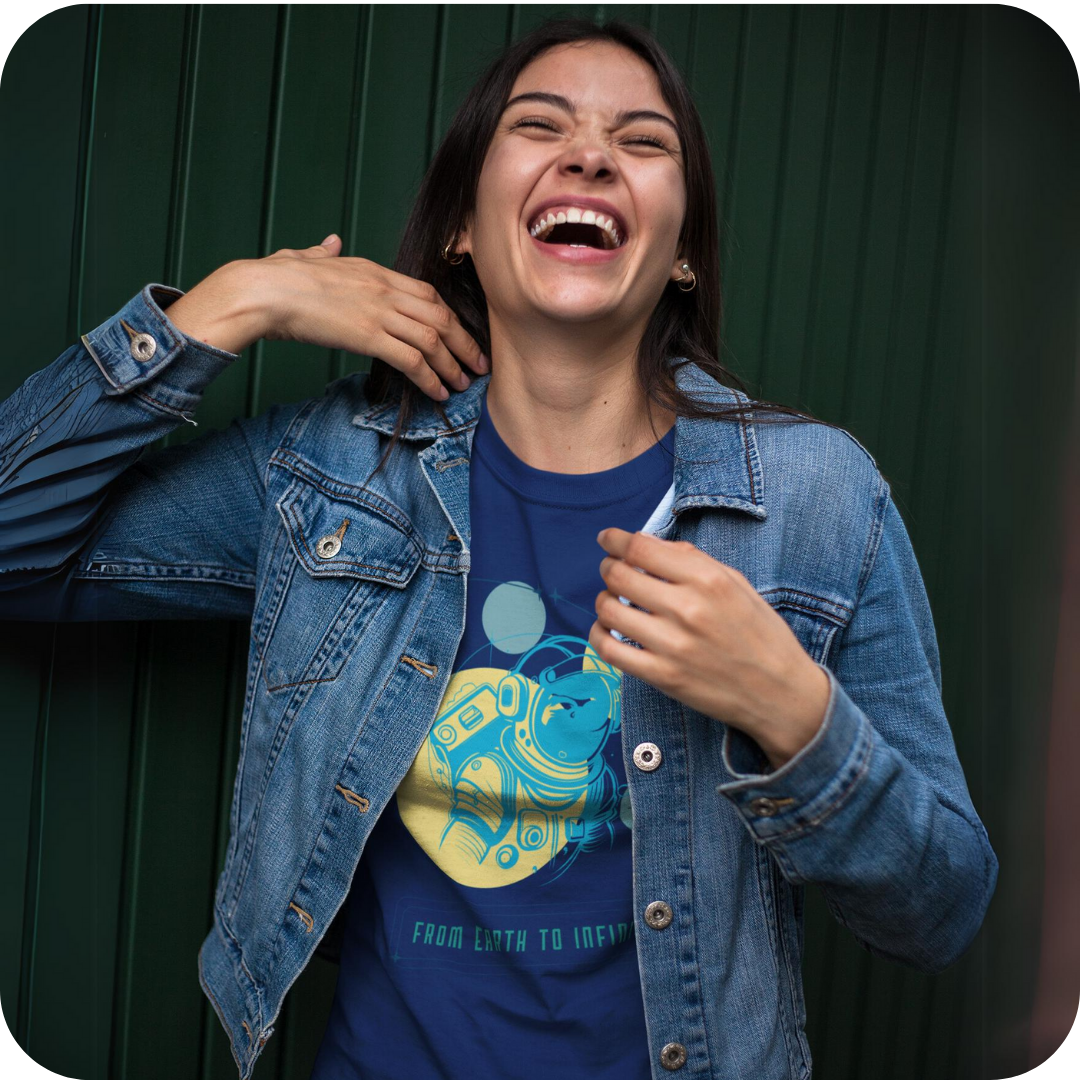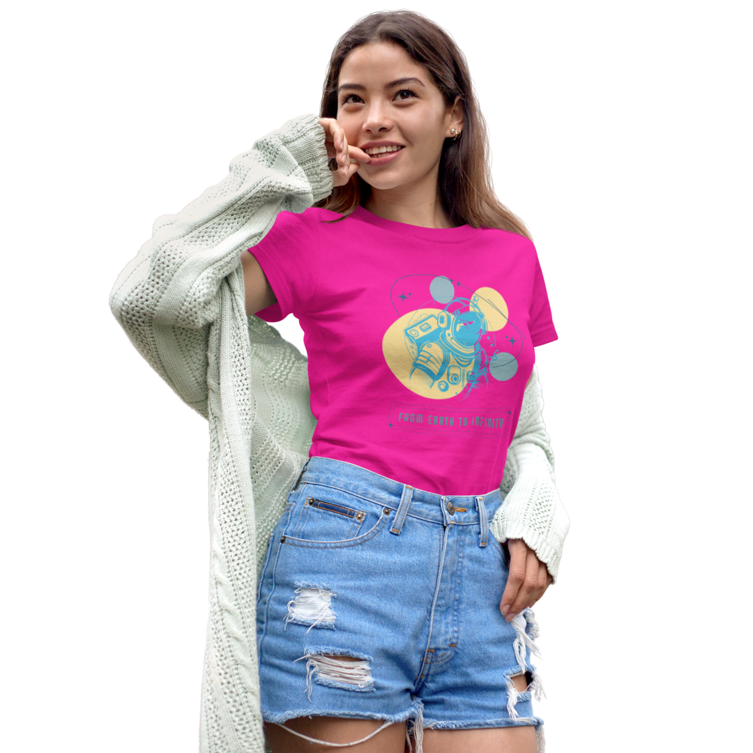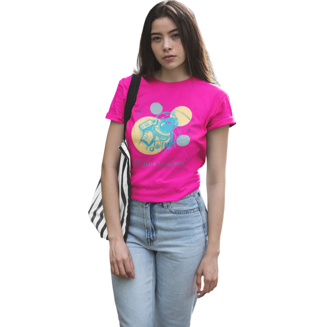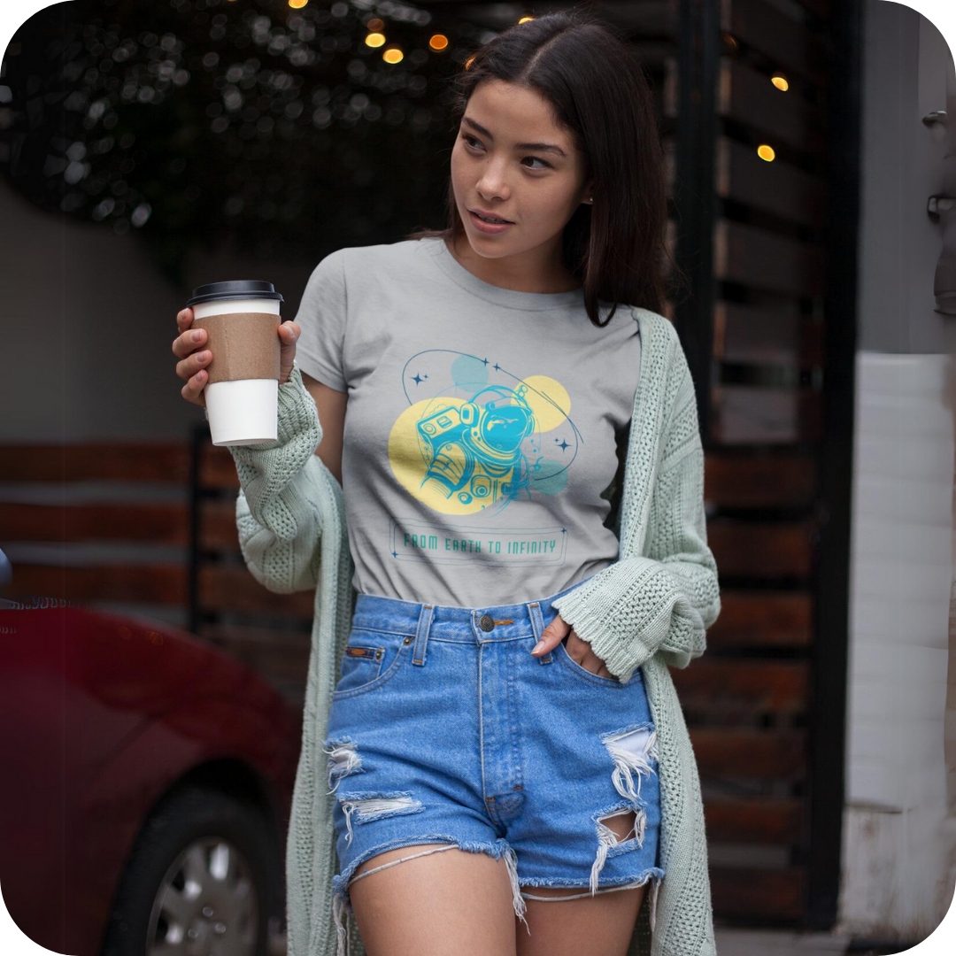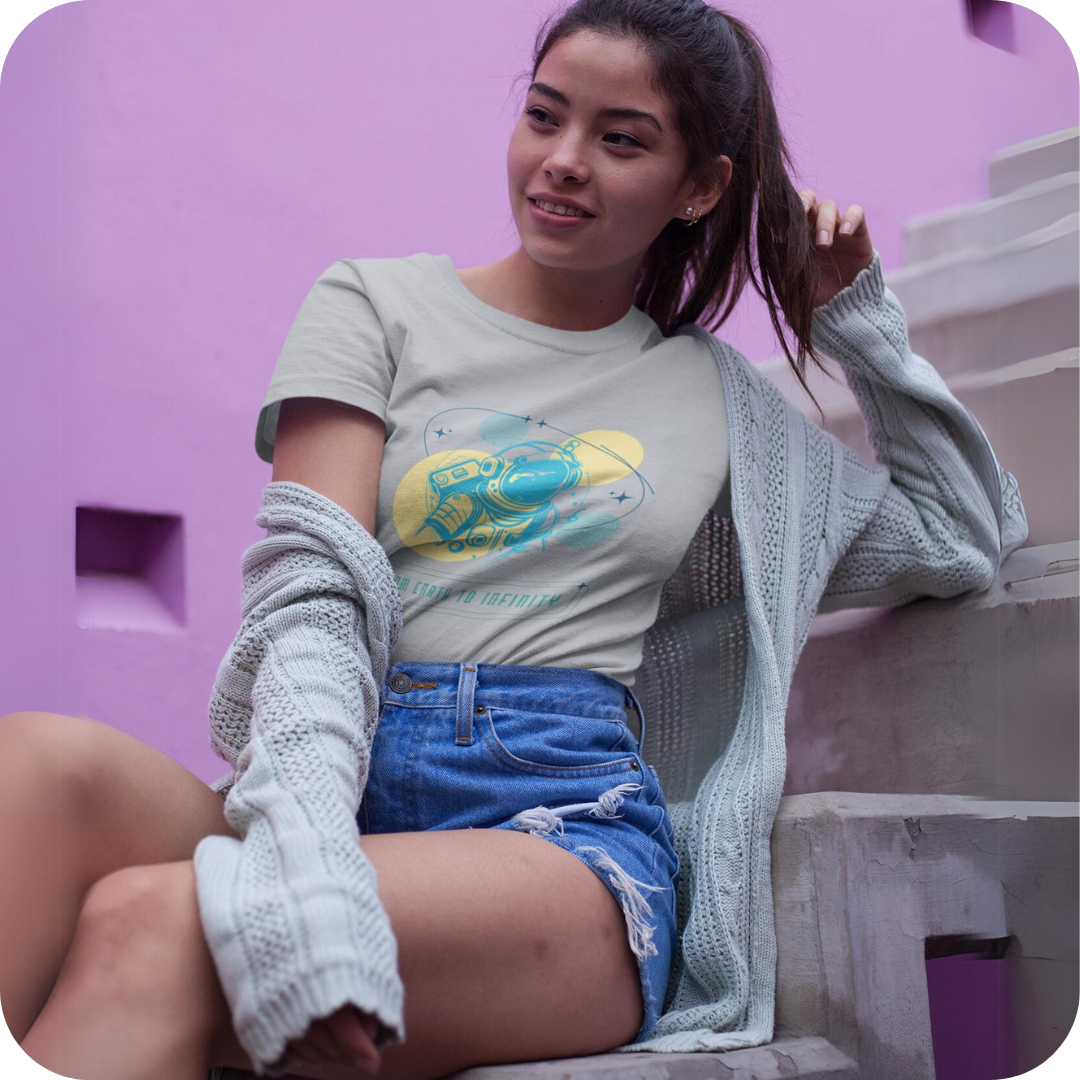 Descubra um mundo de aventura e exploração com a T-Shirt Feminina. Esta edição especial apresenta um astronauta entre os planetas, com a inspiradora frase “Da Terra ao Infinito”, destacando-se como uma peça única e cheia de significado.