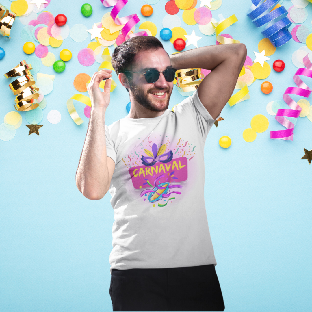 Vista a Camiseta masculina Prime – Edição Carnaval e esteja pronto para viver momentos inesquecíveis durante a festa mais alegre do ano. Características Principais: